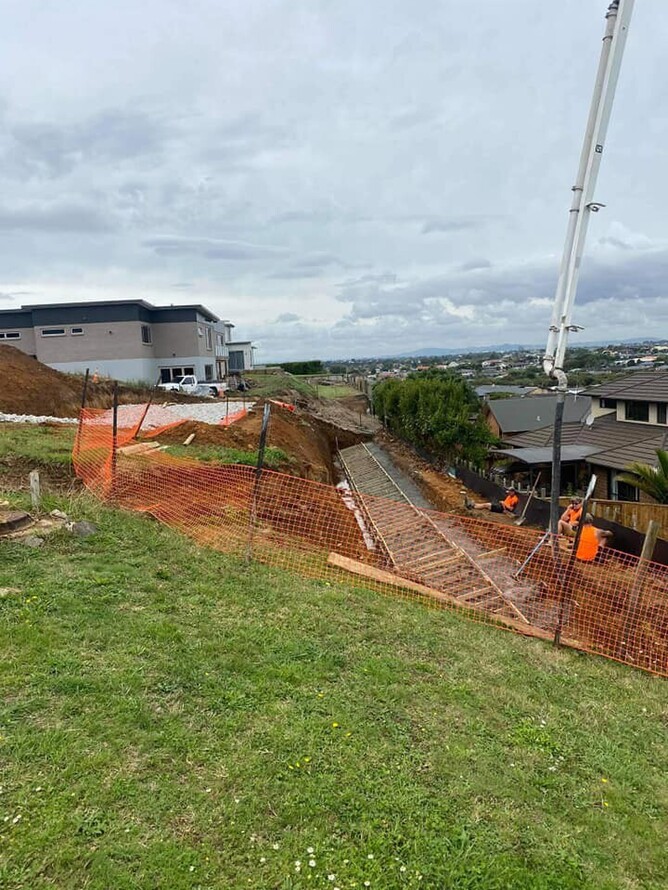 Example: Poured concrete for a multi-level retaining wall on a sloped property in Te Rapa.